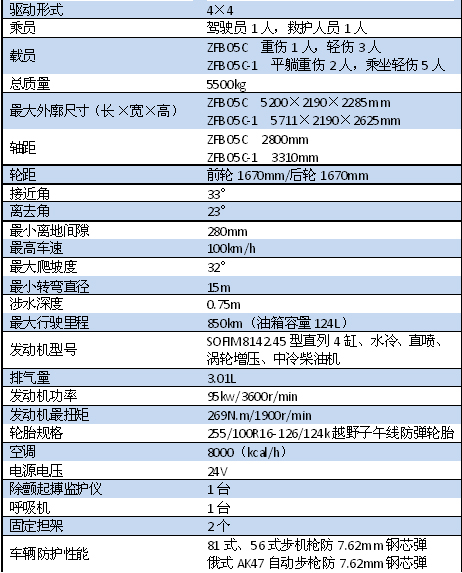 装甲医疗救护车参数
